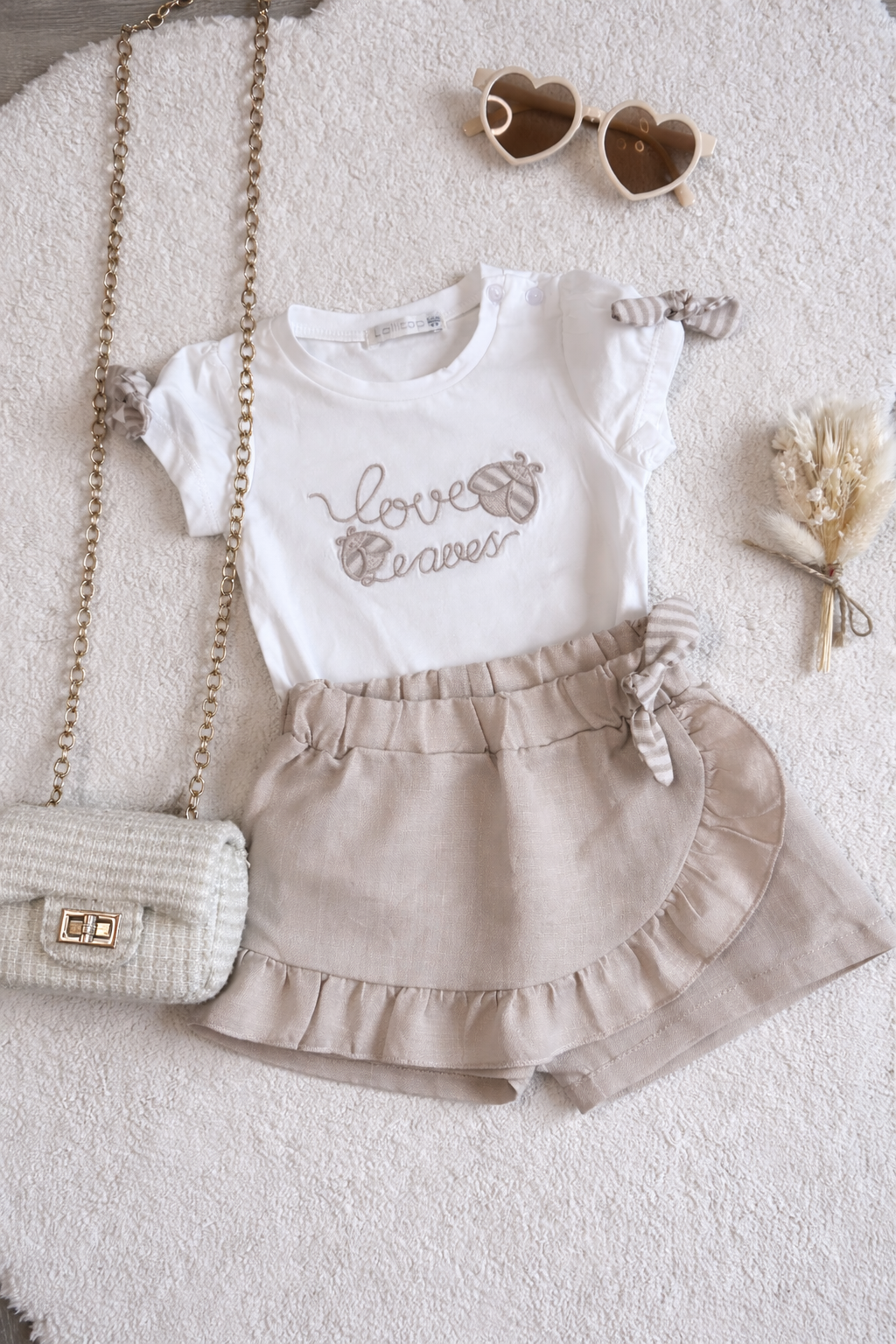 Adorables ensembles à nœuds et volants dans un beige chaud – parfaits pour votre petite fashionista ! Cette douce combinaison apporte une touche de charme supplémentaire à toutes les tenues. Idéal au quotidien comme pour les occasions spéciales. Confort et style réunis !