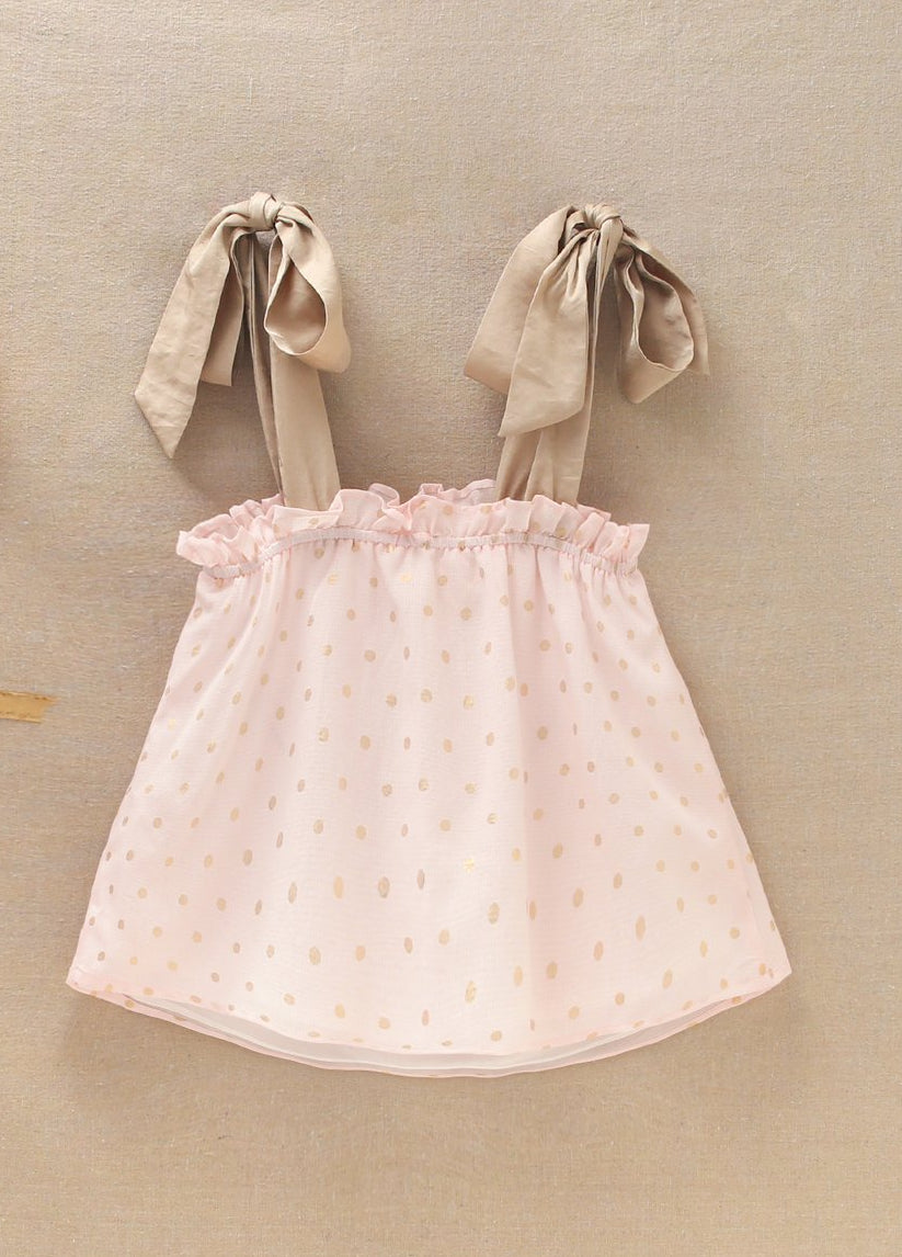 Schattig meisjestop met een vrolijk stippenpatroon dat perfect past bij elke outfit! Dit comfortabele shirt is ideaal voor dagelijks dragen en speelplezier.